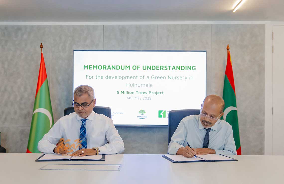 ޓޫރިޒަމް އެންޑް އެންވަޔަރްމެންޓް މިނިސްޓްރީގައި ބޭއްވި ރަސްމިއްޔާތުގައި މިނިސްޓްރީގެ ފަރާތުން ސޮއެކުރެއްވީ މިނިސްޓަރ ތޯރިޤް އިބްރާހިމްއެވެ. އެޗްޑީސީގެ ފަރާތުން މެނޭޖިންގ ޑިރެކްޓަރ މުޙައްމަދު މައުރޫފް ޖަމީލް އެވެ.