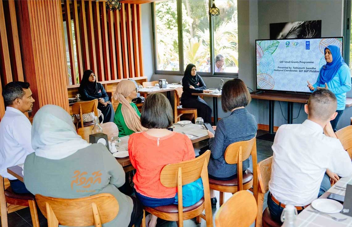 ޔޫ.އެން.ޑީ.ޕީގެ ސްމޯލް ގްރާންޓްސް ޕްރޮގްރާމްގެ ޕްރެޒެންޓޭޝަނުގެ ރަސްމިއްޔާތުގައި ދަނޑުވެރިކަމާއި ދިރޭތަކެއްޗާއި ބެހޭ ވަޒީރު، ޑރ. މަރްޔަމް މާރިޔާ ބައިވެރިވެވަޑައިނަވައިފިއެވެ.