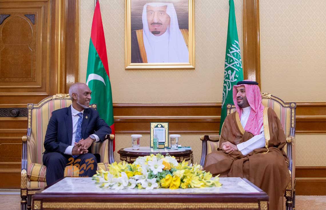 ރައީސް ޑރ. މުޙައްމަދު މުޢިއްޒު، ސައޫދީ އަރަބިއްޔާގެ ވަލީޢަހްދު އަދި ބޮޑުވަޒީރު ހިޒް ރޯޔަލް ހައިނަސް ޕްރިންސް މުޙައްމަދު ބިން ސަލްމާން ބިން ޢަބްދުލްޢަޒީޒް އާލް ސުޢޫދާ ބައްދަލުކުރައްވައިފިއެވެ.