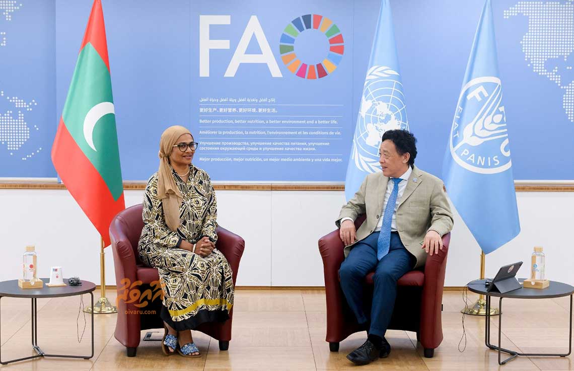އެގްރިކަލްޗަރ މިނިސްޓަރ ޑރ. މަރްޔަމް މާރިޔާ، ފުޑް އެންޑް އެގްރިކަލްޗަރ އޯގަނައިޒޭޝަން (އެފްއޭއޯ )ގެ ޑިރެކްޓަރ ޖެނެރަލް، މިސްޓަރ ޗޫ ޑޮންގްޔޫ އާ ބައްދަލުކުރައްވައިފިއެވެ.