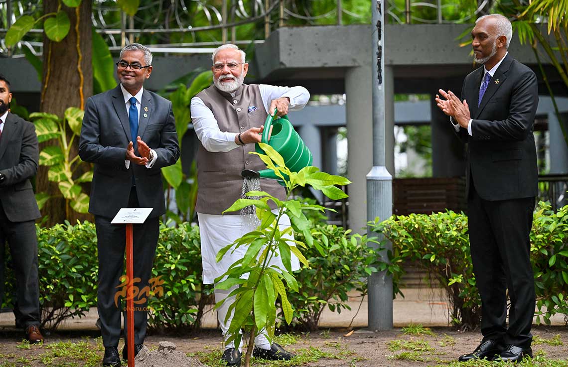އިންޑިއާގެ ބޮޑުވަޒީރު ހިޒް އެކްސަލަންސީ ނަރެންދްރަ މޯދީ ރާއްޖެއަށް މިހާރު ކުރައްވަމުން ގެންދަވާ ފުރަމާނަ ދަތުރުފުޅުގެ ތެރެއިން، ސަލްޓަން ޕާކުގައި މިއަދު ހަވީރު ކުރިއަށް ގެންދިޔަ ގަސް އިންދުމުގެ ރަސްމިއްޔާތުގައި އެމަނިކުފާނު ބައިވެރިވެޑައިގެންފިއެވެ.