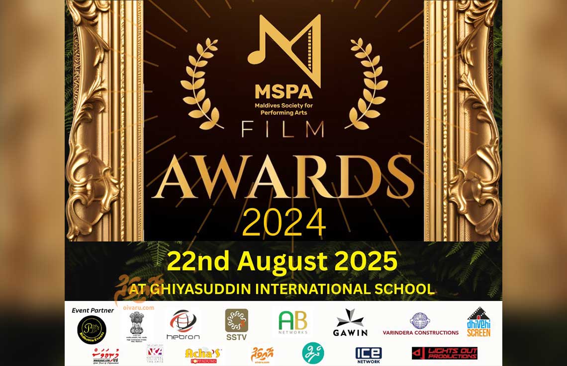 މޯލްޑިވްސް ސޮސައިޓީ ފޯރ ޕާރފޯމިން އާޓްސް (އެމްއެސްޕީއޭ) ގެ ފިލްމު އެވޯޑްސް މި މަހުގެ 22 ވާ ހުކުރު ދުވަހުގެ ރޭ ބޭއްވުމަށް ނިންމައިފިއެވެ.